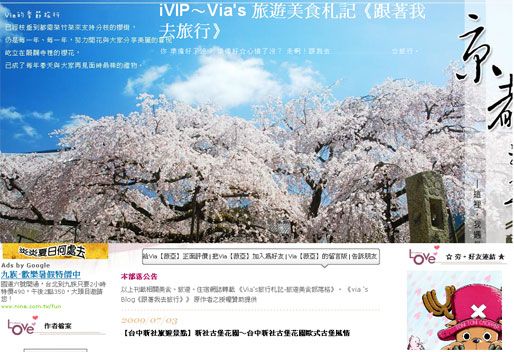 今天一早 朋友傳來個網址給我http://blog.sina.com.tw/vias/我還在納悶,我有去sina申請帳號嗎.......就看到了這個山寨版的Via旅行札記真的是無言...到了極點請大家務必尊重別人的智慧財產權 山寨版的Via旅行札記畫面 via其實願意在非商業行為下讓大家引用文章所以即使有人勸我封鎖右鍵拷貝,我還是抱持著文章讓大家分享的心態並不願鎖文…